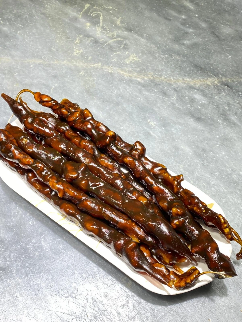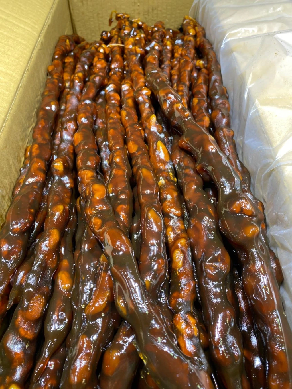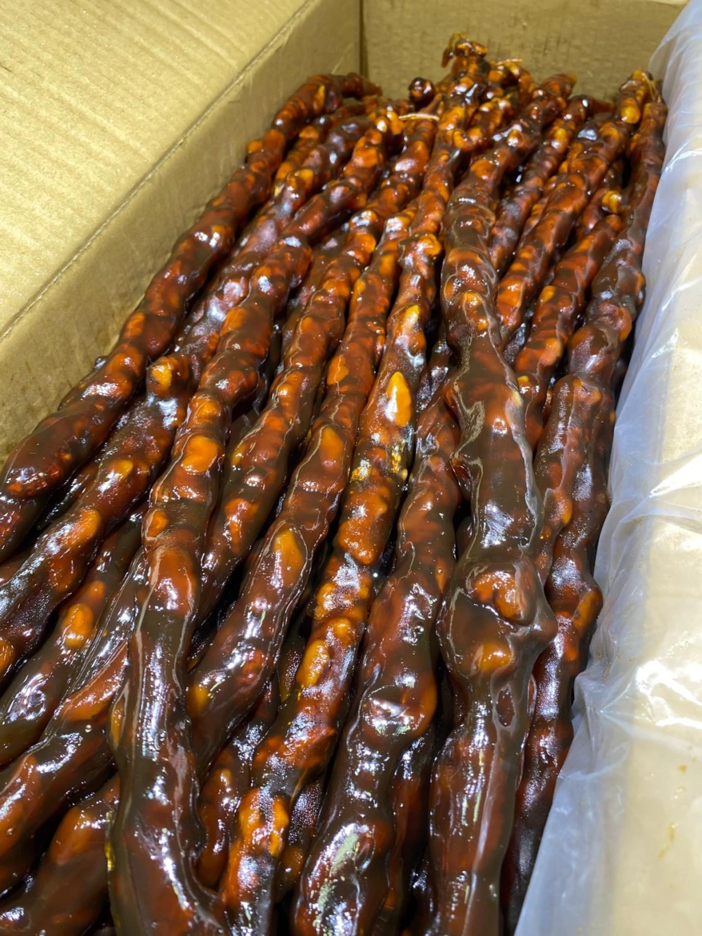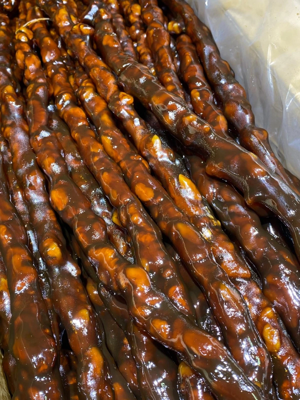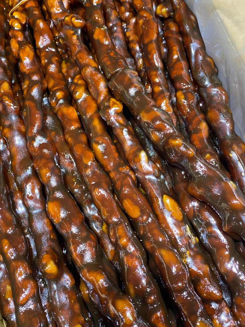 Lezzetli Maraş sucuğunu doğal siyah üzüm pekmeziyle tatlandırarak ve doğal bertiz cevizi ile özel bir lezzet sunuyoruz. Bu özel karışım, damakları mest eden bir tat deneyimi sunmaktadır.